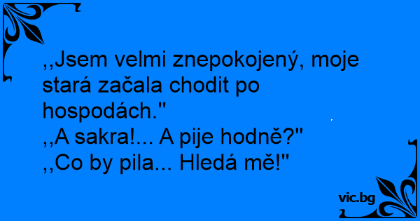 ,,Jsem velmi znepokojený, moje stará začala chodit po hospodách.''