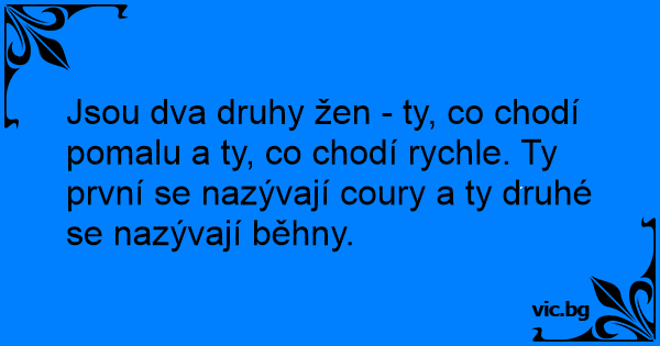 Jsou dva druhy žen - ty, co chodí pomalu a ty, co chodí rychle. Ty první se nazývají coury a ty druhé se nazývají běhny.