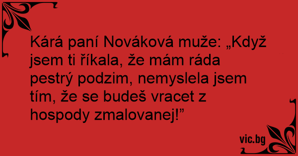 Kárá paní Nováková muže: „Když jsem ti říkala, že mám ráda pestrý podzim, nemyslela jsem tím, že se budeš vracet z hospody zmalovanej!”