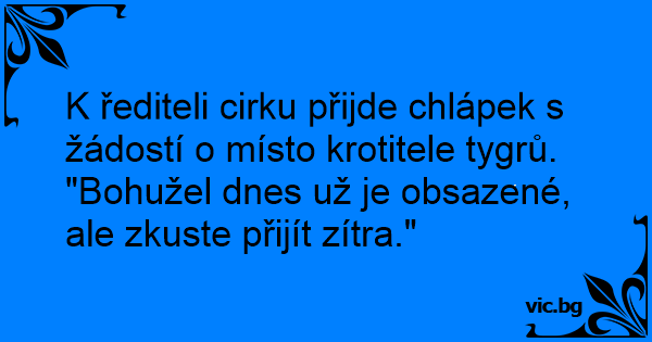 K řediteli cirku přijde chlápek s žádostí o místo krotitele tygrů.