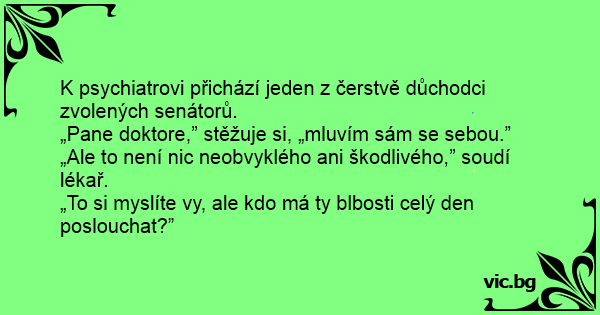 „Pane doktore,” stěžuje si, „mluvím sám se sebou.”