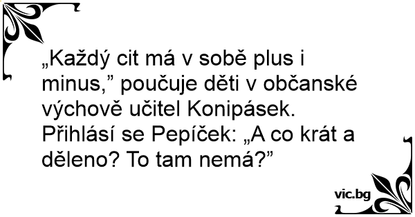 Přihlásí se Pepíček: „A co krát a děleno? To tam nemá?”