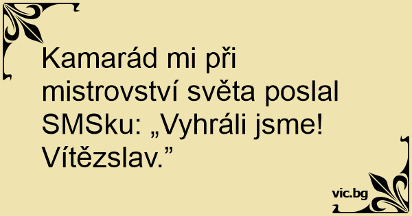 Kamarád mi při mistrovství světa poslal SMSku: „Vyhráli jsme! Vítězslav.”
