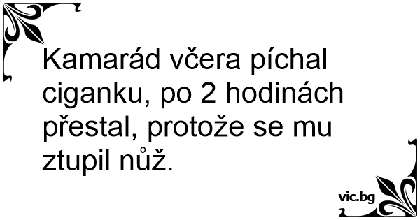 Kamarád včera píchal ciganku, po 2 hodinách přestal, protože se mu ztupil nůž.