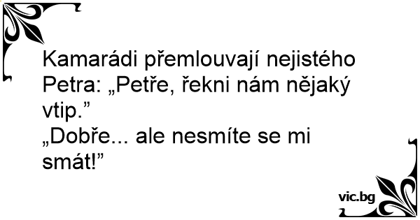 Kamarádi přemlouvají nejistého Petra: „Petře, řekni nám nějaký vtip.”