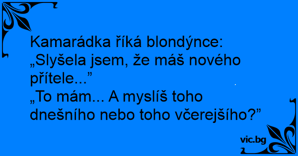 Kamarádka říká blondýnce: „Slyšela jsem, že máš nového přítele...”