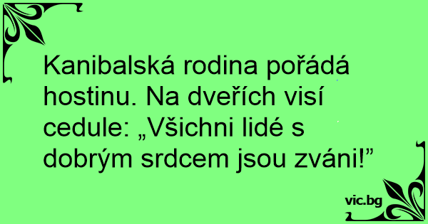 Kanibalská rodina pořádá hostinu. Na dveřích visí cedule: „Všichni lidé s dobrým srdcem jsou zváni!”
