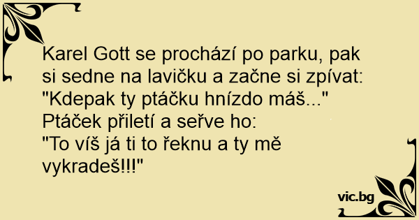 Karel Gott se prochází po parku, pak si sedne na lavičku a začne si zpívat: