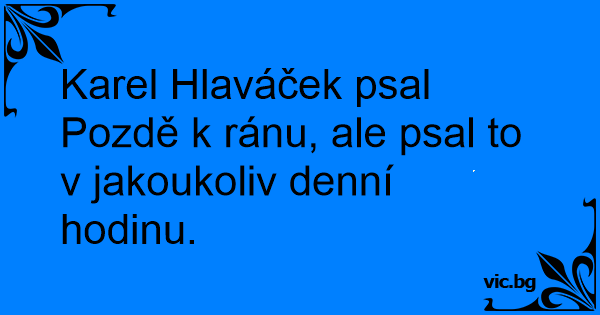 Karel Hlaváček psal Pozdě k ránu, ale psal to v jakoukoliv denní hodinu.