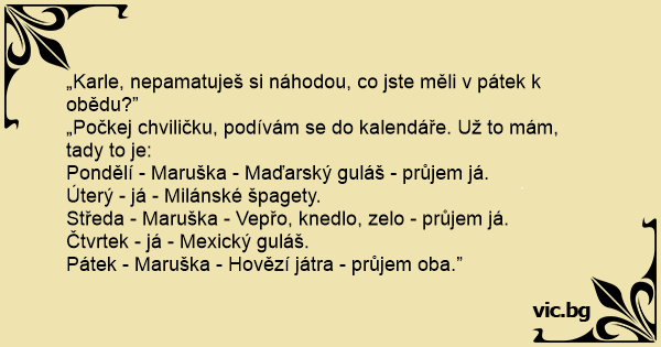 „Karle, nepamatuješ si náhodou, co jste měli v pátek k obědu?”
