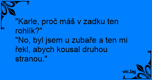 "No, byl jsem u zubaře a ten mi řekl, abych kousal druhou stranou."