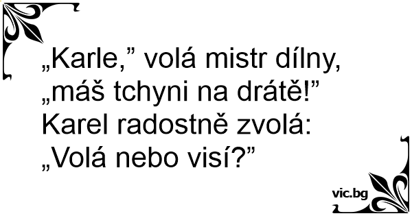 „Karle,” volá mistr dílny, „máš tchyni na drátě!”