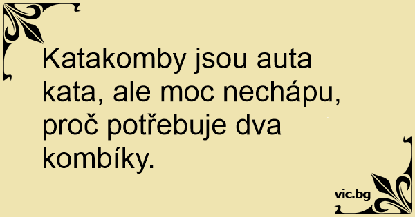 Katakomby jsou auta kata, ale moc nechápu, proč potřebuje dva kombíky.