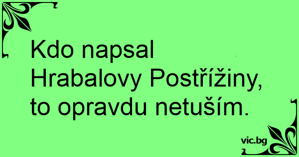 Kdo napsal Hrabalovy Postřížiny, to opravdu netuším.