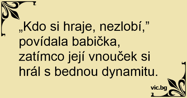 „Kdo si hraje, nezlobí,” povídala babička, zatímco její vnouček si hrál s bednou dynamitu.