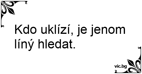 Kdo uklízí, je jenom líný hledat.
