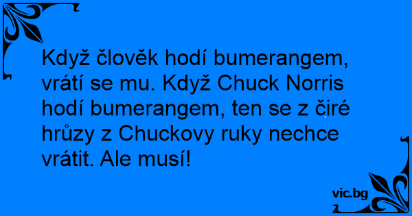 Když člověk hodí bumerangem, vrátí se mu. Když Chuck Norris hodí bumerangem, ten se z čiré hrůzy z Chuckovy ruky nechce vrátit. Ale musí!