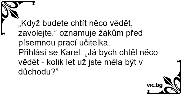Přihlásí se Karel: „Já bych chtěl něco vědět - kolik let už jste měla být v důchodu?”