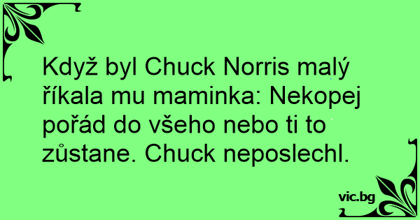 Když byl Chuck Norris malý říkala mu maminka: Nekopej pořád do všeho nebo ti to zůstane. Chuck neposlechl.