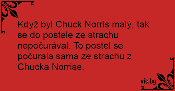 Když byl Chuck Norris malý, tak se do postele ze strachu nepočůrával. To postel se počurala sama ze strachu z Chucka Norrise.