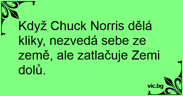 Když Chuck Norris dělá kliky, nezvedá sebe ze země, ale zatlačuje Zemi dolů.