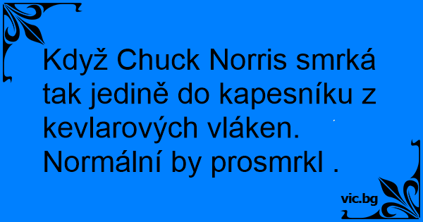 Když Chuck Norris smrká tak jedině do kapesníku z kevlarových vláken. Normální by prosmrkl .