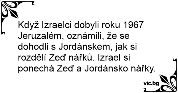 Když Izraelci dobyli roku 1967 Jeruzalém, oznámili, že se dohodli s Jordánskem, jak si rozdělí Zeď nářků. Izrael si ponechá Zeď a Jordánsko nářky.