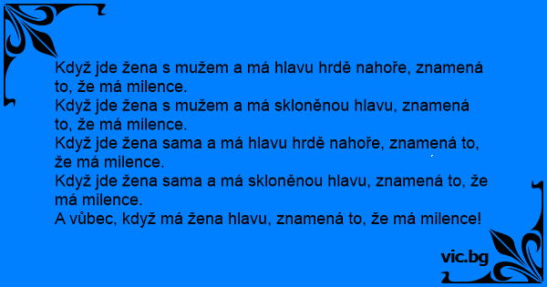 A vůbec, když má žena hlavu, znamená to, že má milence!