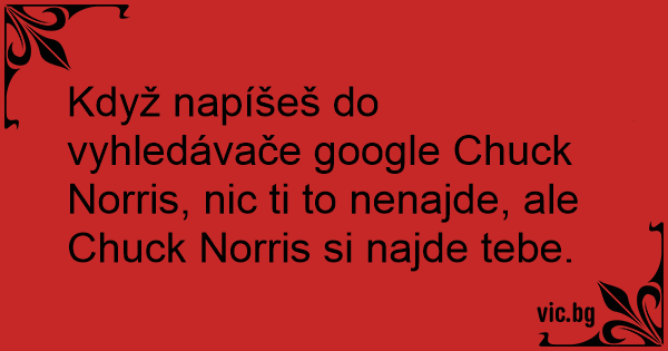 Když napíšeš do vyhledávače google Chuck Norris, nic ti to nenajde, ale Chuck Norris si najde tebe.