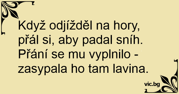 Když odjížděl na hory, přál si, aby padal sníh. Přání se mu vyplnilo - zasypala hо tam lavina.
