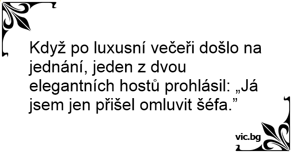 Když po luxusní večeři došlo na jednání, jeden z dvou elegantních hostů prohlásil: „Já jsem jen přišel omluvit šéfa.”