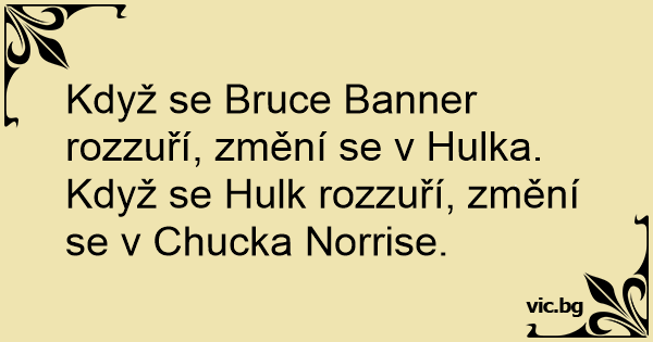 Když se Bruce Banner rozzuří, změní se v Hulka. Když se Hulk rozzuří, změní se v Chucka Norrise.