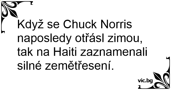Když se Chuck Norris naposledy otřásl zimou, tak na Haiti zaznamenali silné zemětřesení.