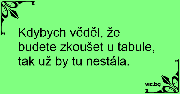 Kdybych věděl, že budete zkoušet u tabule, tak už by tu nestála.