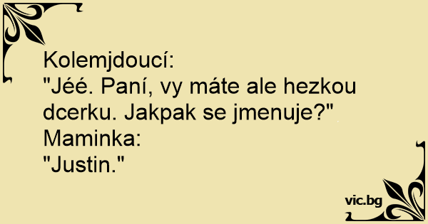 "Jéé. Paní, vy máte ale hezkou dcerku. Jakpak se jmenuje?"