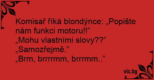 Komisař říká blondýnce: „Popište nám funkci motoru!!”
