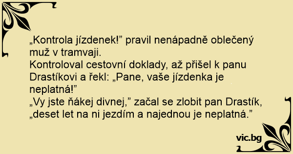 Kontroloval cestovní doklady, až přišel k panu Drastíkovi a řekl: „Pane, vaše jízdenka je neplatná!”