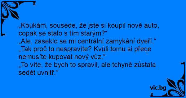 „Koukám, sousede, že jste si koupil nové auto, copak se stalo s tím starým?“