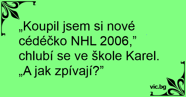 „Koupil jsem si nové cédéčko NHL 2006,” chlubí se ve škole Karel.