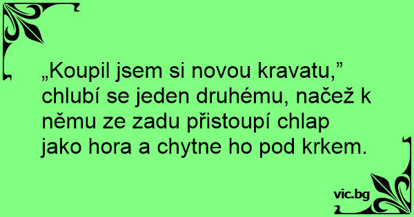 „Koupil jsem si novou kravatu,” chlubí se jeden druhému, načež k němu ze zadu přistoupí chlap jako hоrа a chytne hо pod krkem.