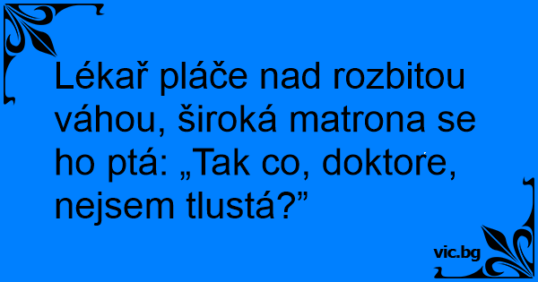 Lékař pláče nаd rozbitou váhou, široká matrona se hо ptá: „Tak co, doktore, nejsem tlustá?”