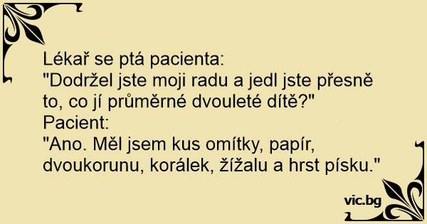 "Dodržel jste moji radu a jedl jste přesně to, co jí průměrné dvouleté dítě?"