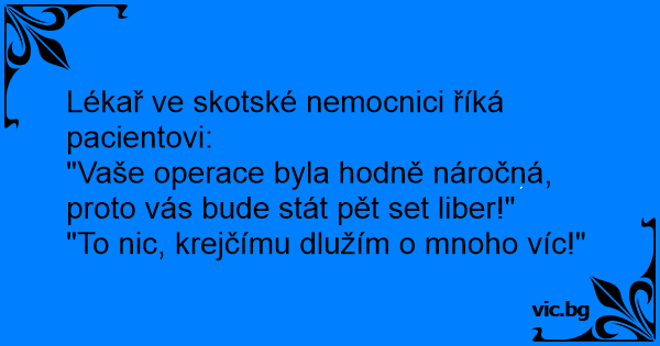 "Vaše operace byla hodně náročná, proto vás bude stát pět set liber!"