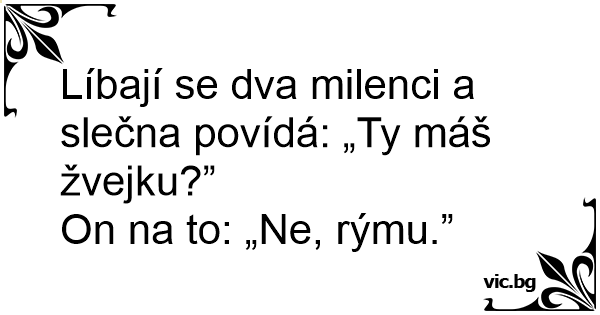 Líbají se dva milenci a slečna povídá: „Ty máš žvejku?”