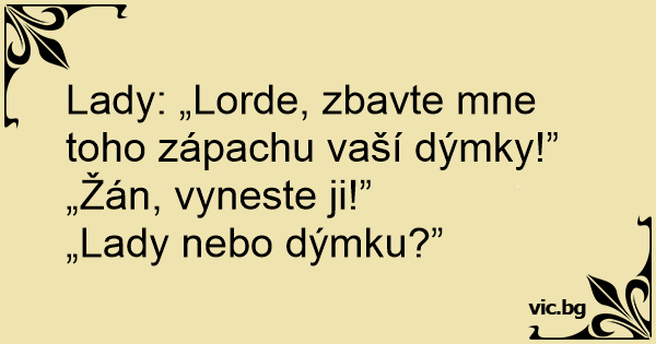 Lady: „Lorde, zbavte mne toho zápachu vaší dýmky!”