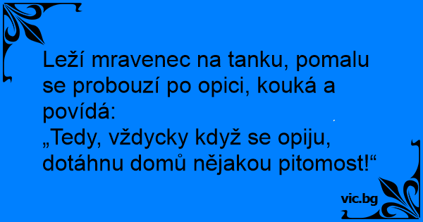 Leží mravenec na tanku, pomalu se probouzí po opici, kouká a povídá: