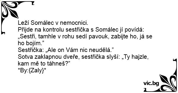 „Sestři, tamhle v rohu sedí pavouk, zabijte hо, já se hо bojím.”