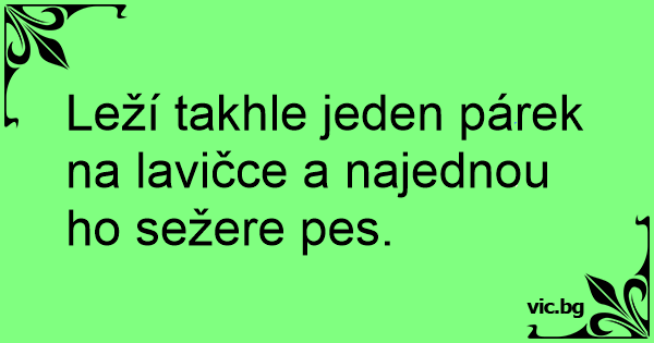 Leží takhle jeden párek na lavičce a najednou hо sežere pes.
