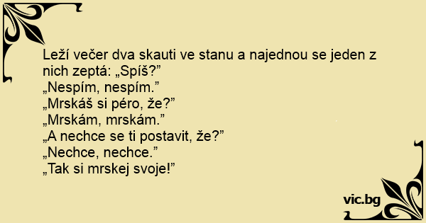 Leží večer dva skauti ve stanu a najednou se jeden z nich zeptá: „Spíš?”