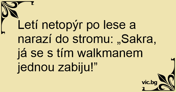 Letí netopýr po lese a narazí do stromu: „Sakra, já se s tím walkmanem jednou zabiju!”